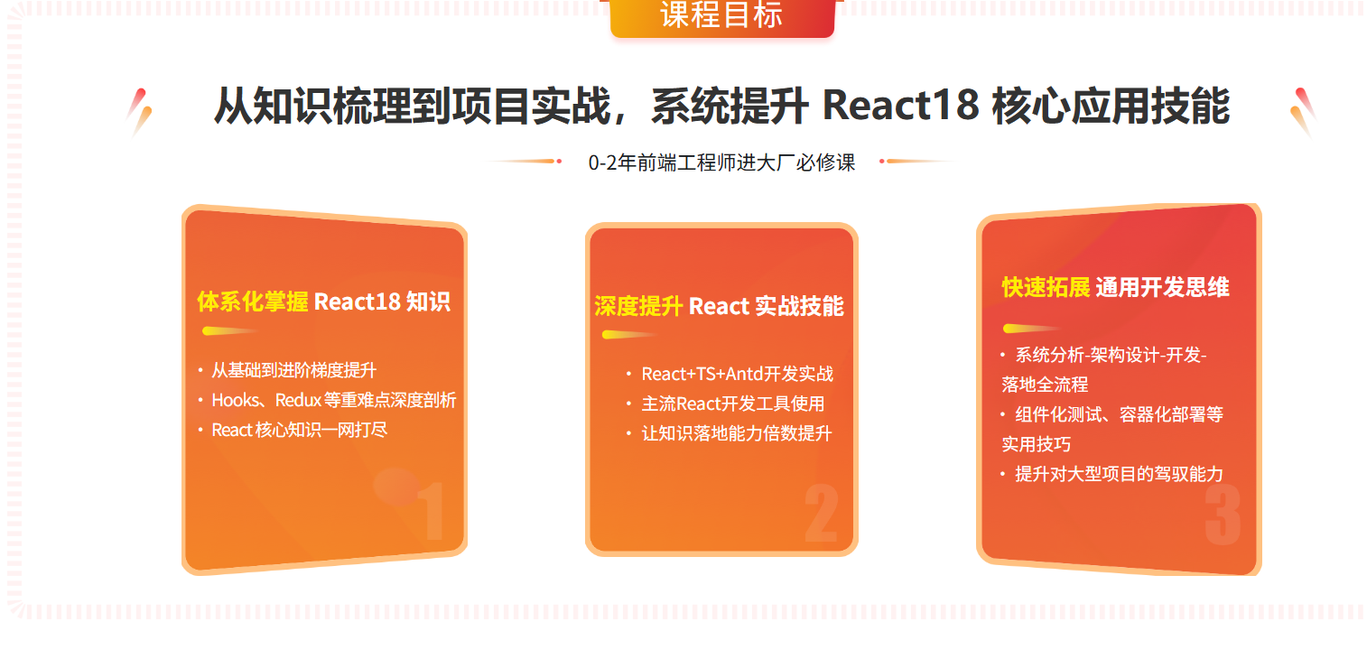 React — 大厂前端必备的技能点,本课程将带你系统学习 React 17 的完整技术体系,并结合 TypeScript 开发热门业务应用,实现对于框架的深度掌握,助你提升硬实力,快人一步进大厂。